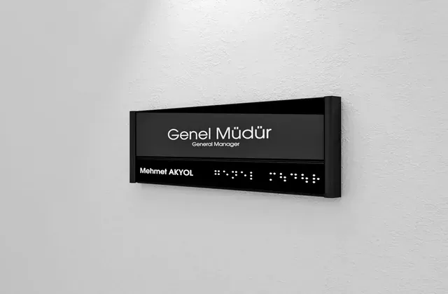 Bina içinde koridor, kat bilgileri, oda numaraları gibi bilgilendirme amacıyla kullanılır. Genellikle pleksi, alüminyum veya kompozit malzemeden yapılır. - Ayaklı Yönlendirme Tabelaları